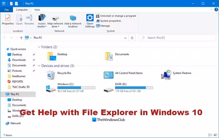 获取有关 Windows 11/10 中文件资源管理器的帮助这篇文章将向您展示如何打开和使用文件资源管理器。
